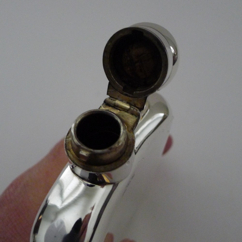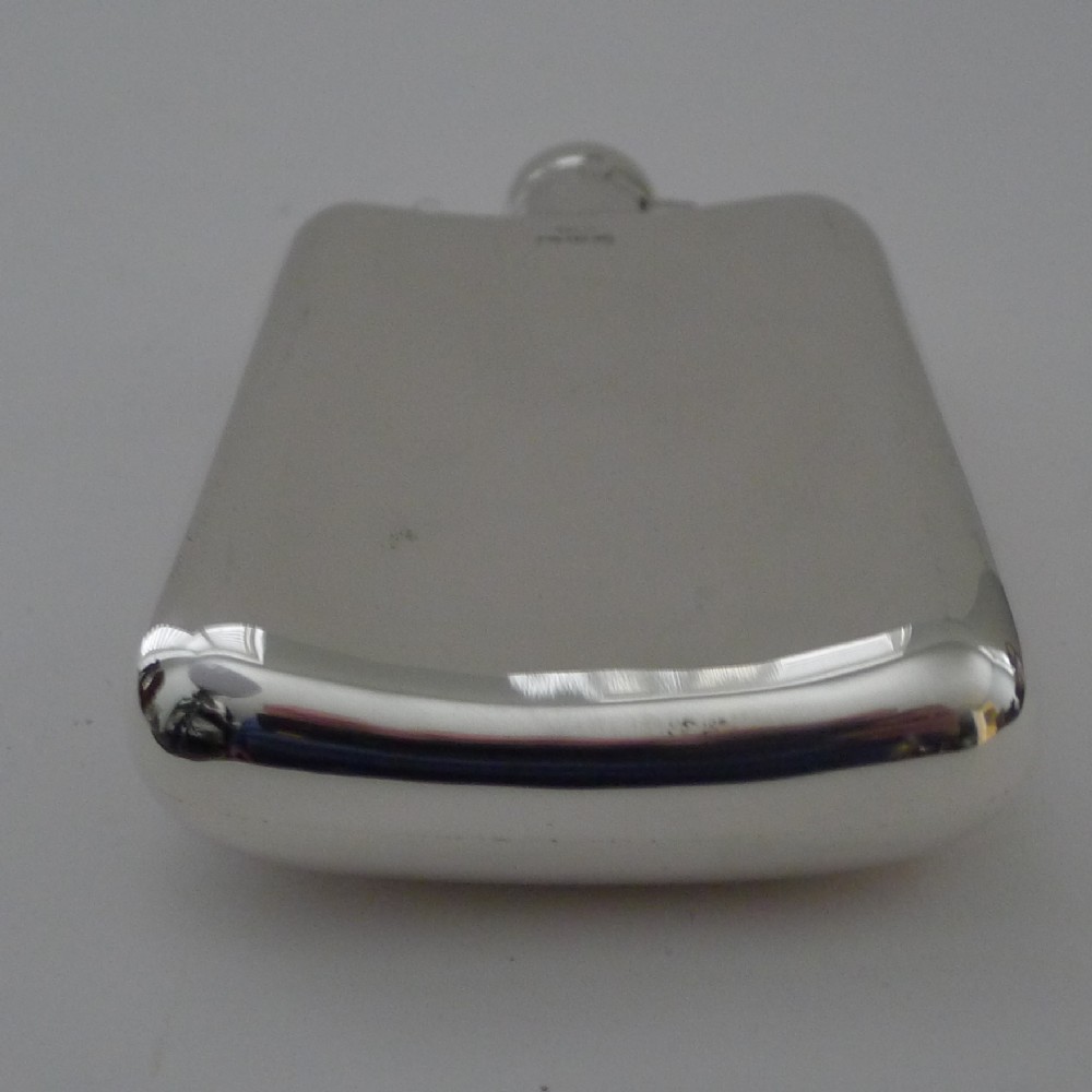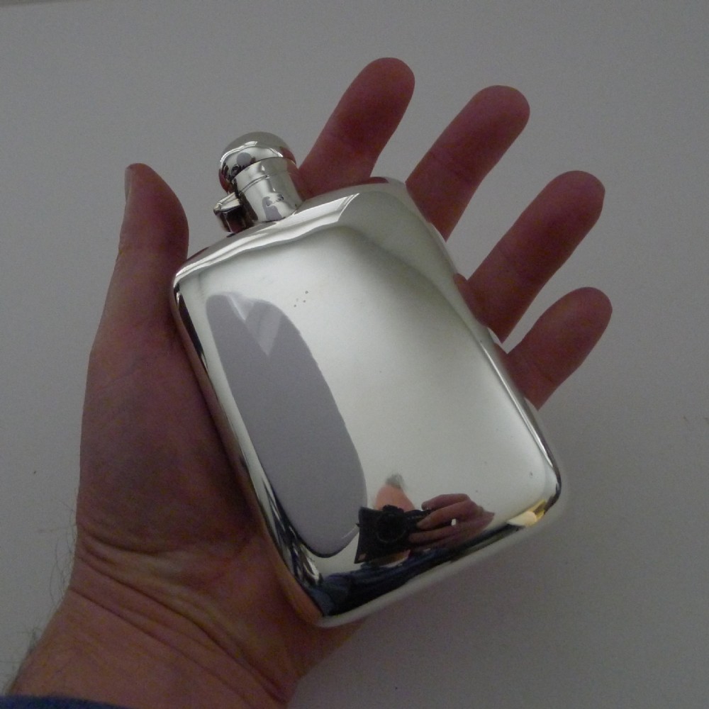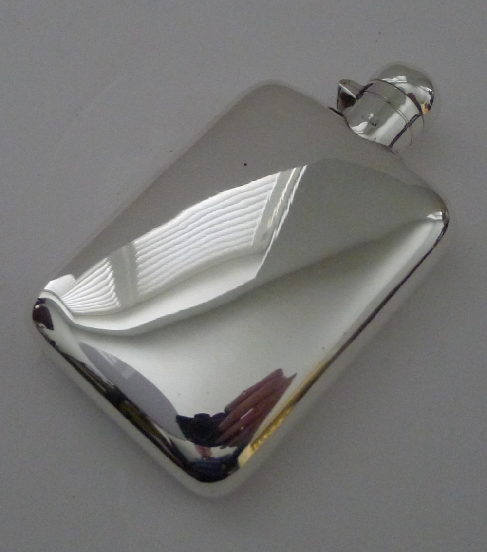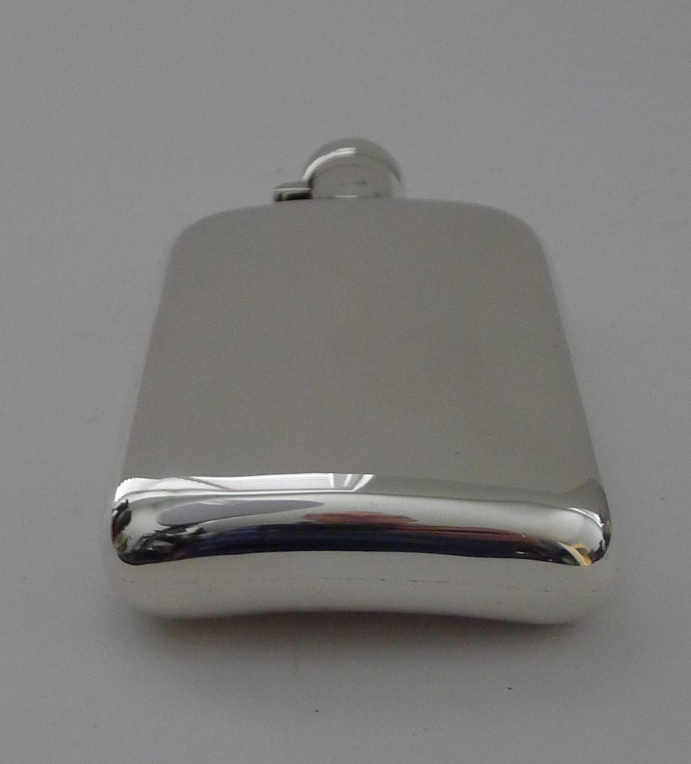 A very smart antique English solid / sterling silver hip flask / spirit flask. Shaped to fit neatly into a pocket with it's shaped back.