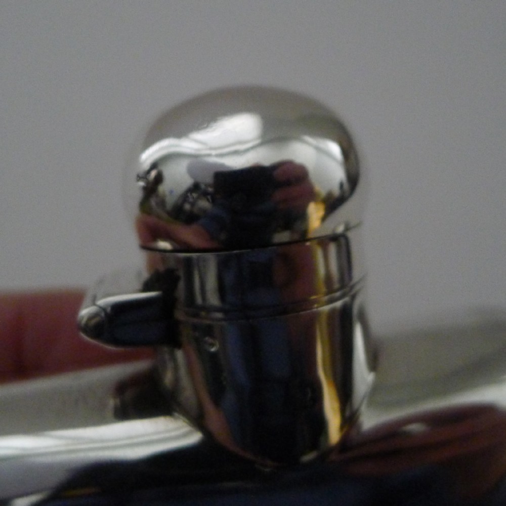 The top has a bayonet fitting requiring a turn and lift movement to open, the interior of the lid retaining it's original cork. There is a minor bruise to the lid, mentioned purely for accuracy.