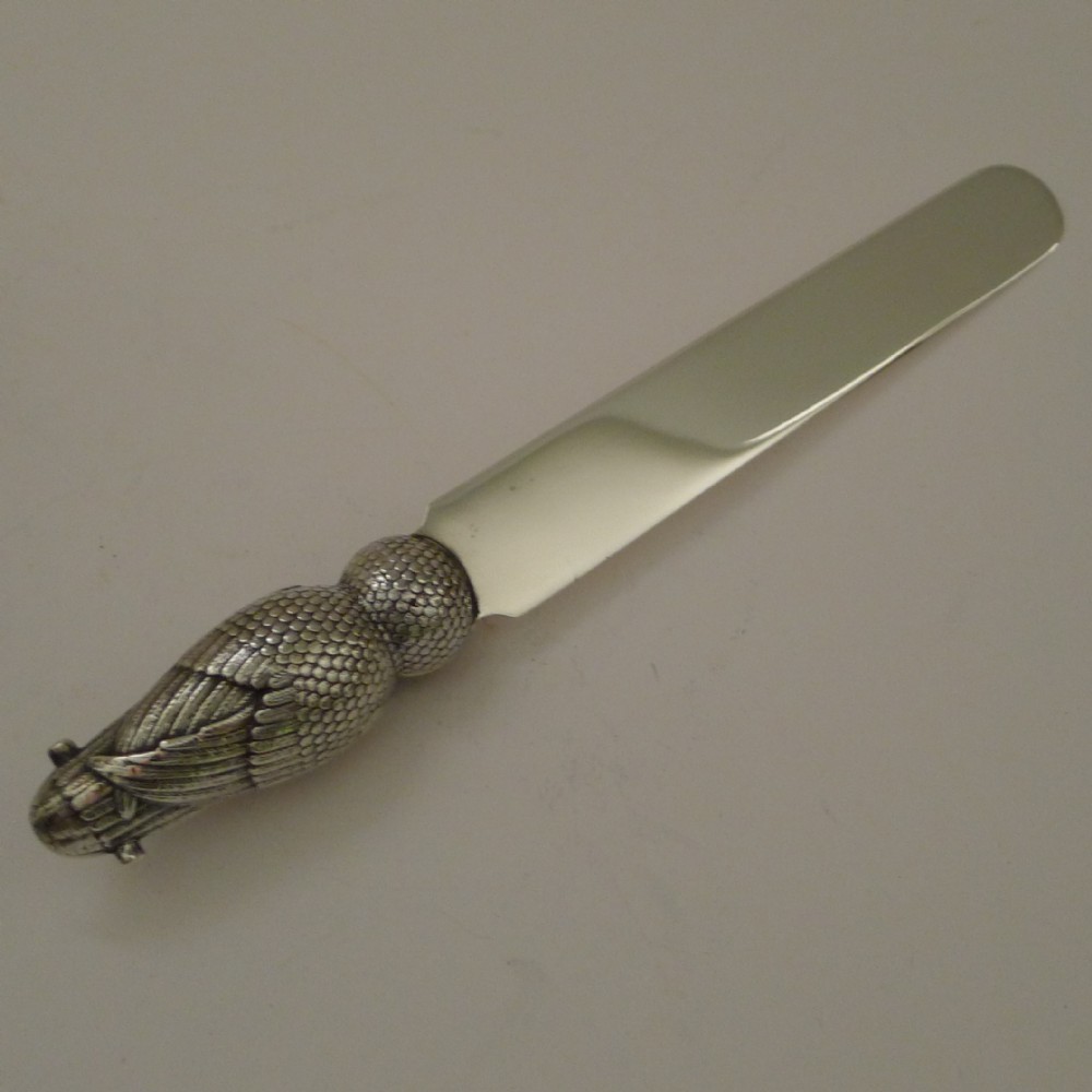 Rare Antique Sampson Mordan Silver Owl Paper Knife