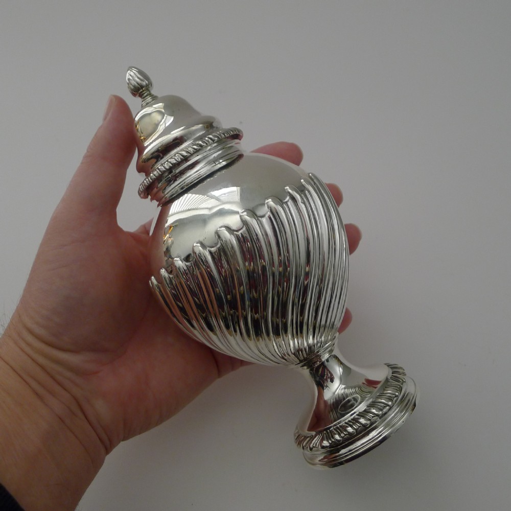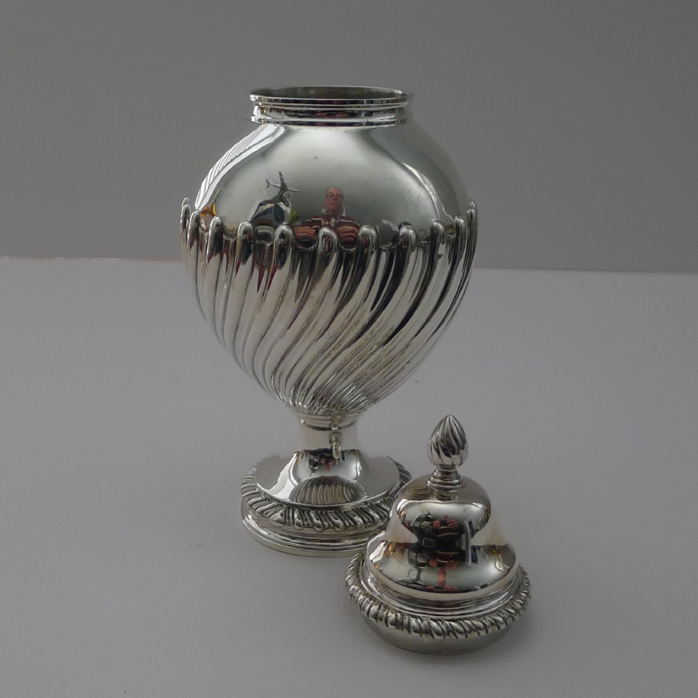 Fitted with a pull off lid with an acorn shaped finial, the caddy is a good size and a good weight, weighing 7.33 Troy Ounces / 228 Grams.