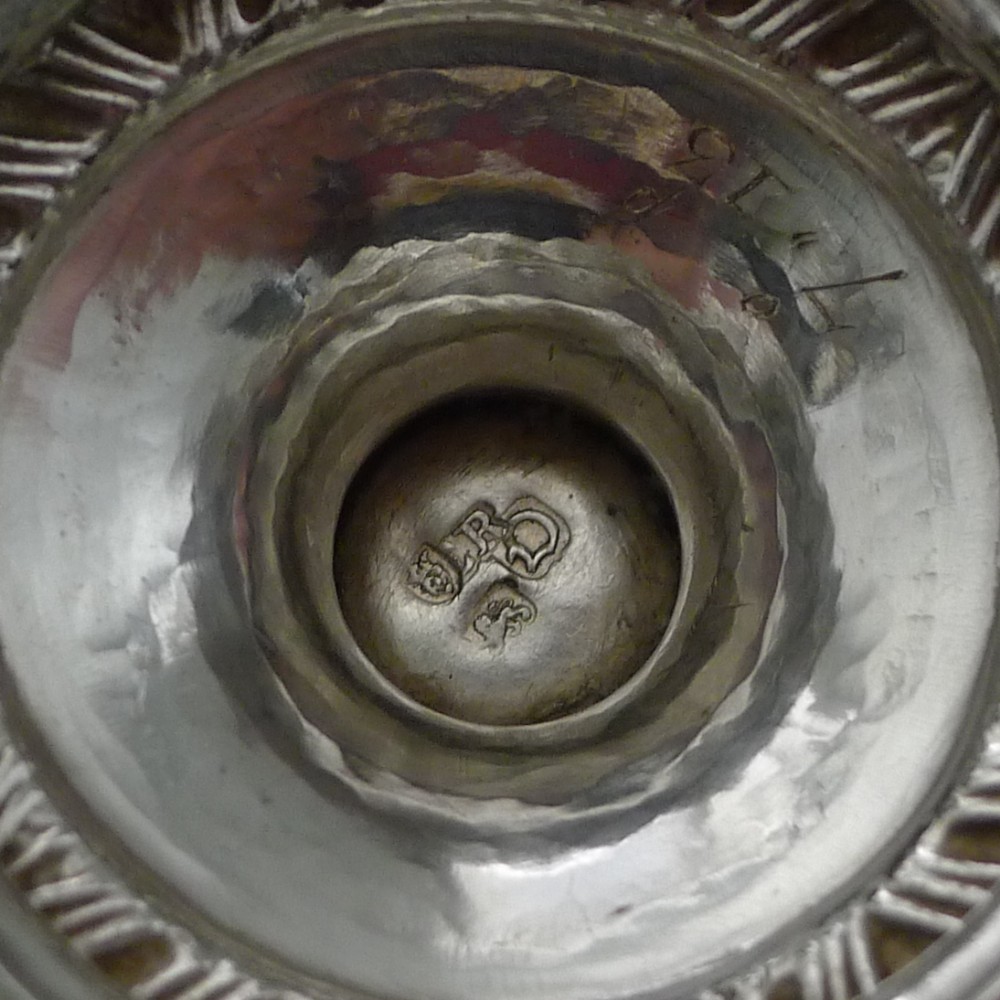 Emick Romer, son of Michel Michelsen Romer, goldsmith of Oslo (1682 - 1739) born 2 August, 1724. Seems to have settled in a London in the early 1750s. First mark entered in the missing register around 1758 and was working at 123, High Holborn. He was a noted supplier to Parker and Wakelin (one of the major suppliers to the King and the nobility) of pierced baskets, epergnes and tea caddies. Candlesticks were also a speciality and most of them have finely pierced decoration to the capitals. Seems to have returned to Norway by May 1795, where he settled in Halden, in the south of the country. A maker of fine and unusual pieces.