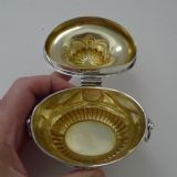 A wonderful Edwardian English sterling silver tea caddy with a hinged lid and ring handles to each side. The body is beautifully decorated with garlands and a simple floral motif. The lid fits well and the hinge in full working order; once opened, a lavishly gilded interior is revealed. The caddy is marked on the back for Birmingham 1902 (the makers mark is somewhat rubbed); this caddy is lucky enough to have an English design registration number on the underside (390774) for 1902. Registration numbers were reserved for items of notable value, the system was not mandatory for all products, it was costly, and it was designed to protect only the most innovative or valuable designs. Excellent antique condition measuring 4" handle to handle x 2 1/2" x 4" tall to top of finial. Weighing 130.6 Grams / 4.2 Troy Ounces. Item: 45995 FREE Worldwide Registered Airmail Directly From the UK FREE Worldwide Shipping Directly From London, England Internal Ref: 45995