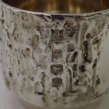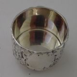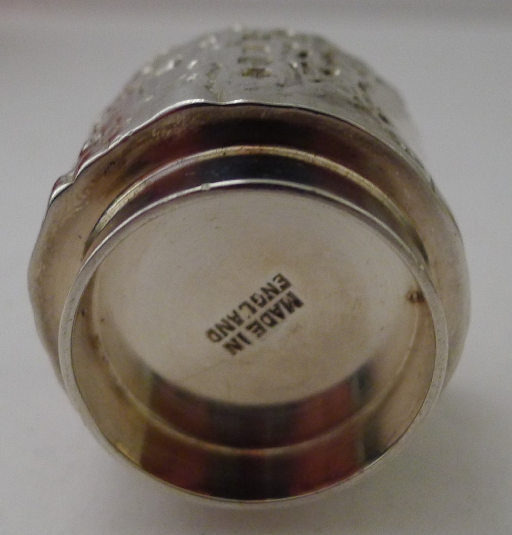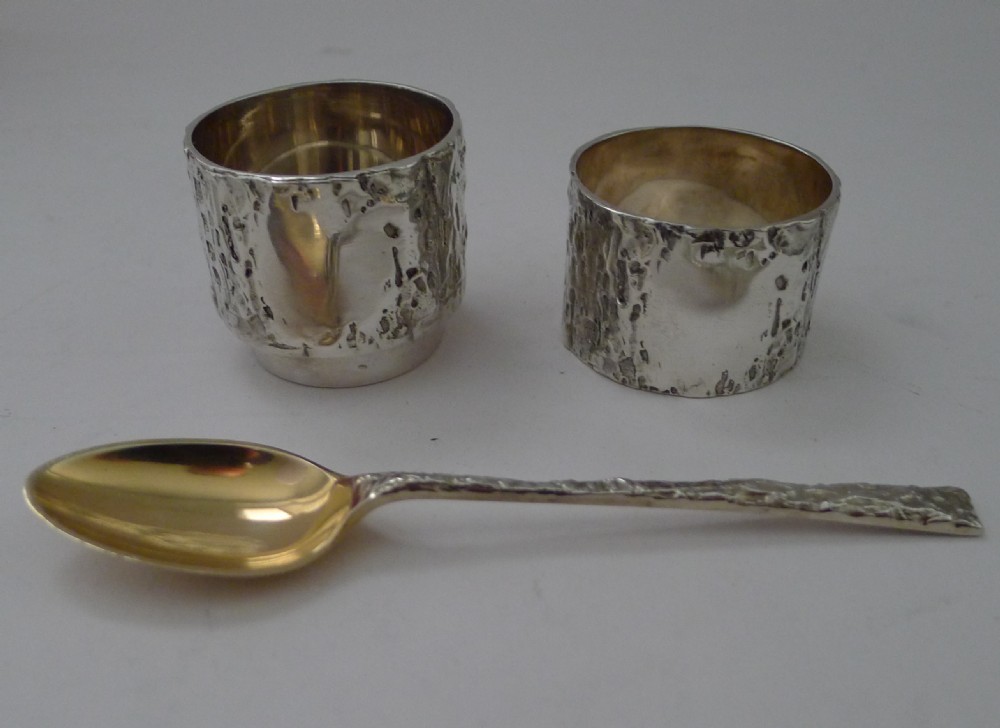 The set comprises an egg cup, a napkin ring and a spoon with gilded bowl. All pieces are a good heavy weight cast in a good gauge of solid silver with a combined weight of 129 Grams / 4.15 Troy Ounces.