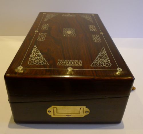 Antique English Mother of Pearl Inlaid Rosewood Writing Slope / Lap Desk c.1830