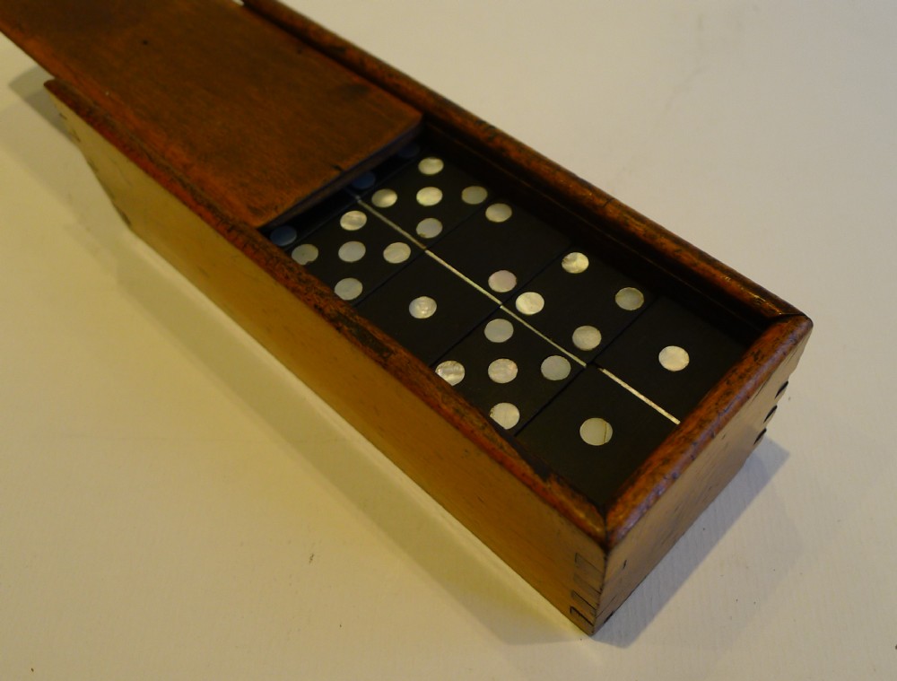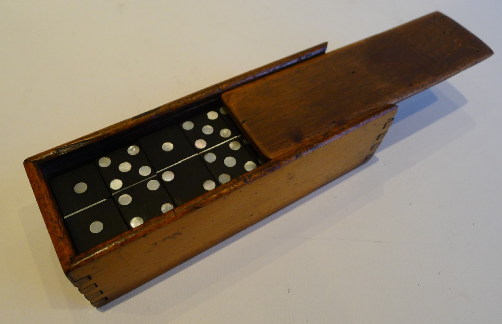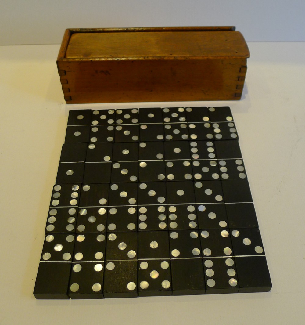 Rare Antique English Boxed Set Dominoes - Ebony and Mother of Pearl