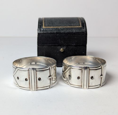 Pair Victorian "Belt" Sterling Silver Napkin Rings