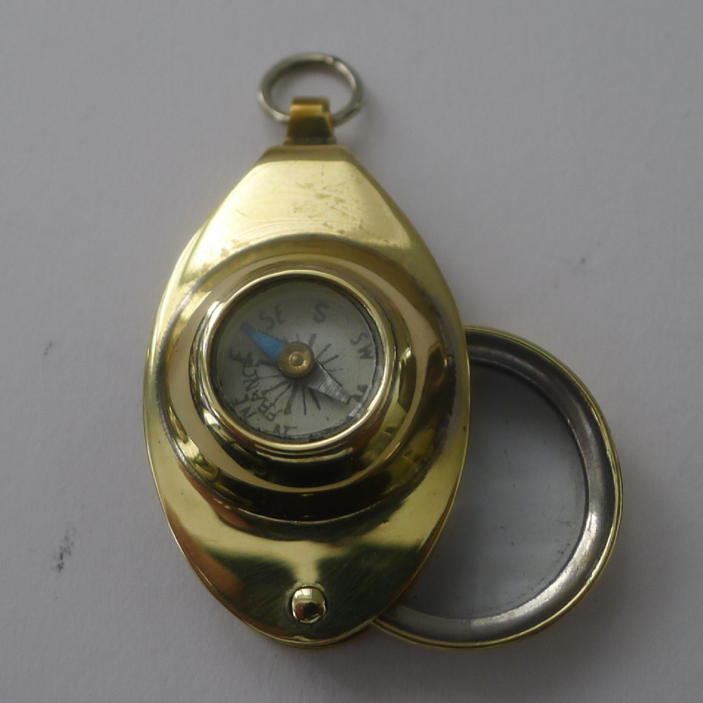 Antique English Pocket Magnifying Glass / Loop With Compass c.1910