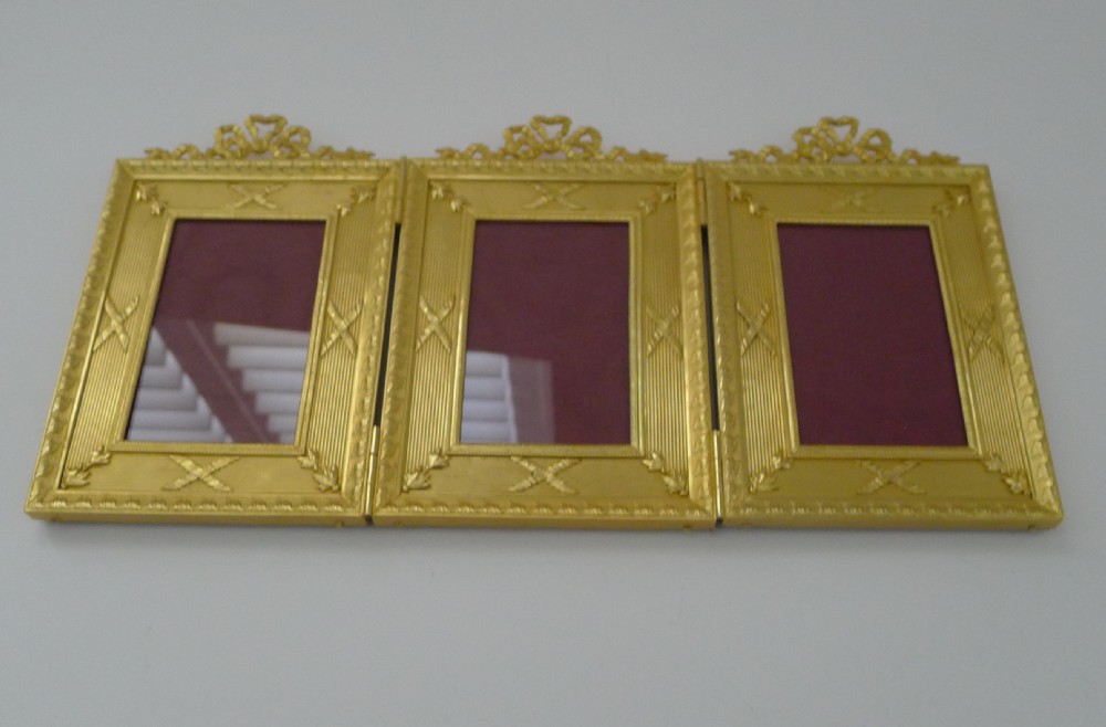 French Gilded Bronze Triple Picture / Photograph Frame c.1900