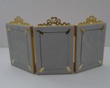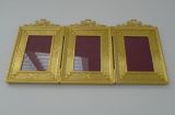 The three hinged frames are made from hefty cast bronze and lavishly finished in gold, showcasing their beautiful design and ribbon and bow mounts.