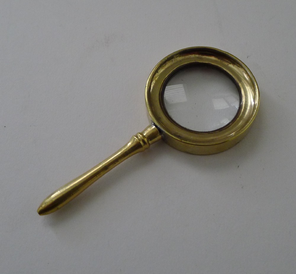 A lovely little magnifying glass made from solid brass with a handle; the perfect size to pop in the pocket or bag. Dating to c.1910, Edwardian in era, the magnifier works well and in excellent condition. 3" x 1 3/8" x 1/4" with a lens diameter measuring 1". Item: 44421 FREE Worldwide Registered Airmail Directly From the UK FREE Worldwide Shipping Directly From London, England Internal Ref: 44421