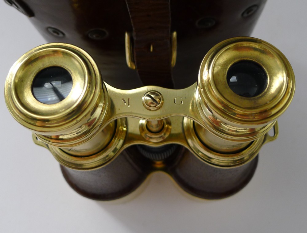 A wonderful pair of fully refurbished French made binoculars, stamped M G (Ministere de la Guerre) created for the British Military for use during World War 1 in 1917.