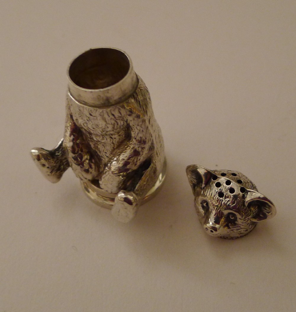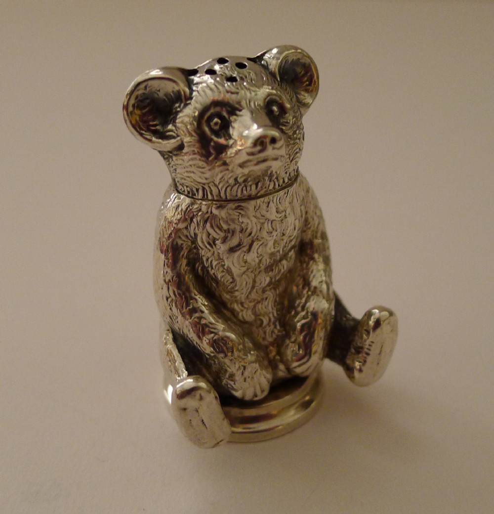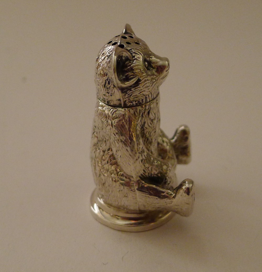 Antique English Sterling Silver Teddy Bear Pepper Pot - 1905