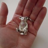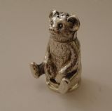 A charming little novelty English Edwardian pepperette in the form of a seated teddy bear, beautifully executed by the well renowned silversmith, Crisford & Norris. The back of the bear is where the full English hallmark can be found for Birmingham 1905 together with the makers initials. Excellent condition measuring 1 5/8" tall x 1 1/8" wide x 1 1/8" deep. 10 Grams / 0.32 Troy Ounces. Item: 45959 FREE Worldwide Registered Airmail Directly From the UK FREE Worldwide Shipping Directly From London, England Internal Ref: 45959