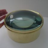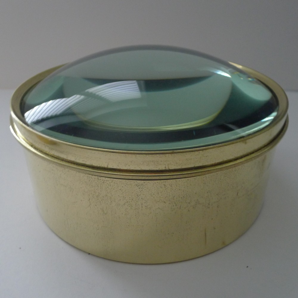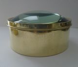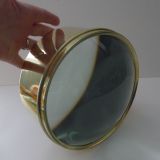 Always very popular and a very useful desk-top accessory, this one is one of the largest I have ever had, quite an imposing size; this size being the most sought-after and hardest to source. These large circular magnifiers actually are the condenser or magnifier from a Magic Lantern dating to around 1910 they are rescued, polished up and put back to use in the modern day. This one is made from polished brass and is excellent quality, un-marked but probably by Optimus. Wonderful condition, with a good magnification and a hefty piece to keep those papers in place. 9" in diameter x 4 1/2" high. Item: 44555 FREE Worldwide Registered Airmail Directly From the UK FREE Worldwide Shipping Directly From London, England Internal Ref: 44555