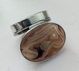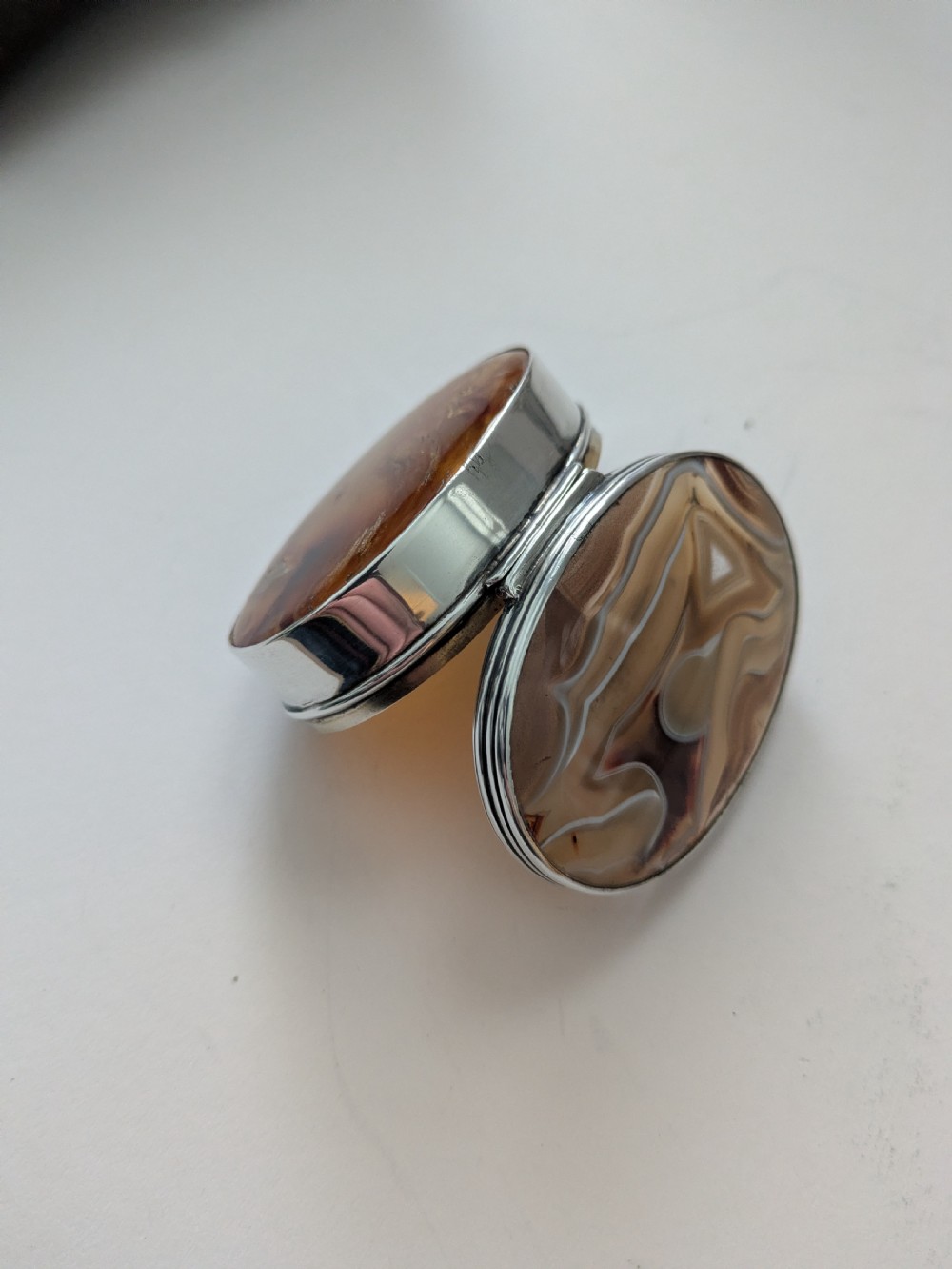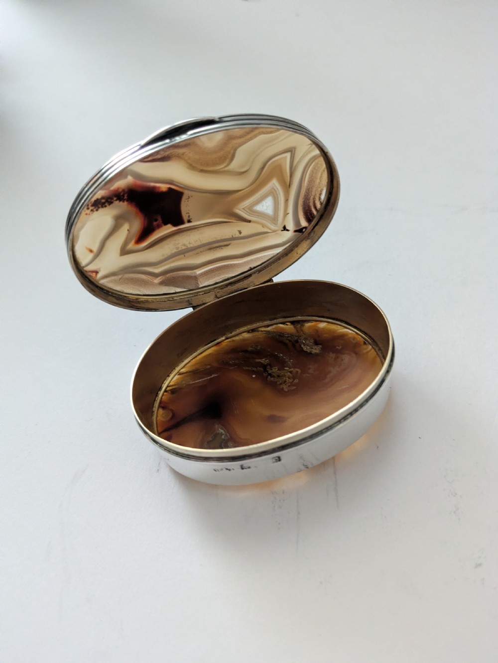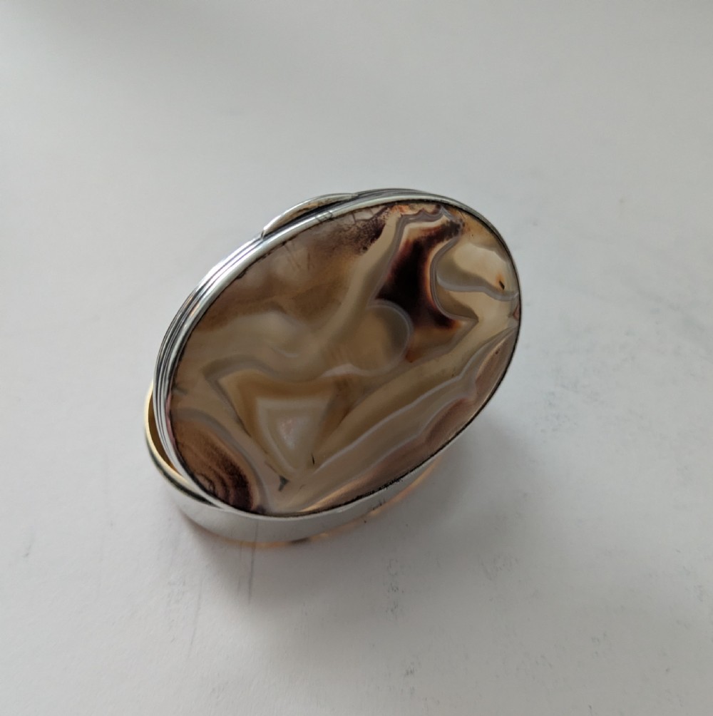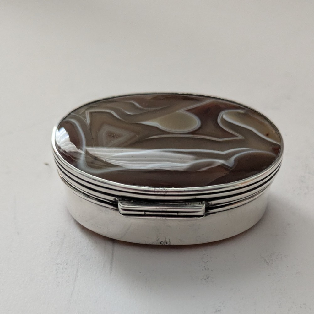 Antique English Sterling Silver & Agate Snuff Box by Hilliard & Thomason - 1902