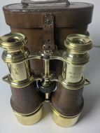The binoculars are clad in a lovely embossed leather remaining in excellent condition, now over 100 years old and a true antique. They have integral sun shades. When closed up they measure 4 1/2" x 2 1/8" x 5 1/2" tall. The leather case measures 5 1/2" x 3" x 5 5/8".
