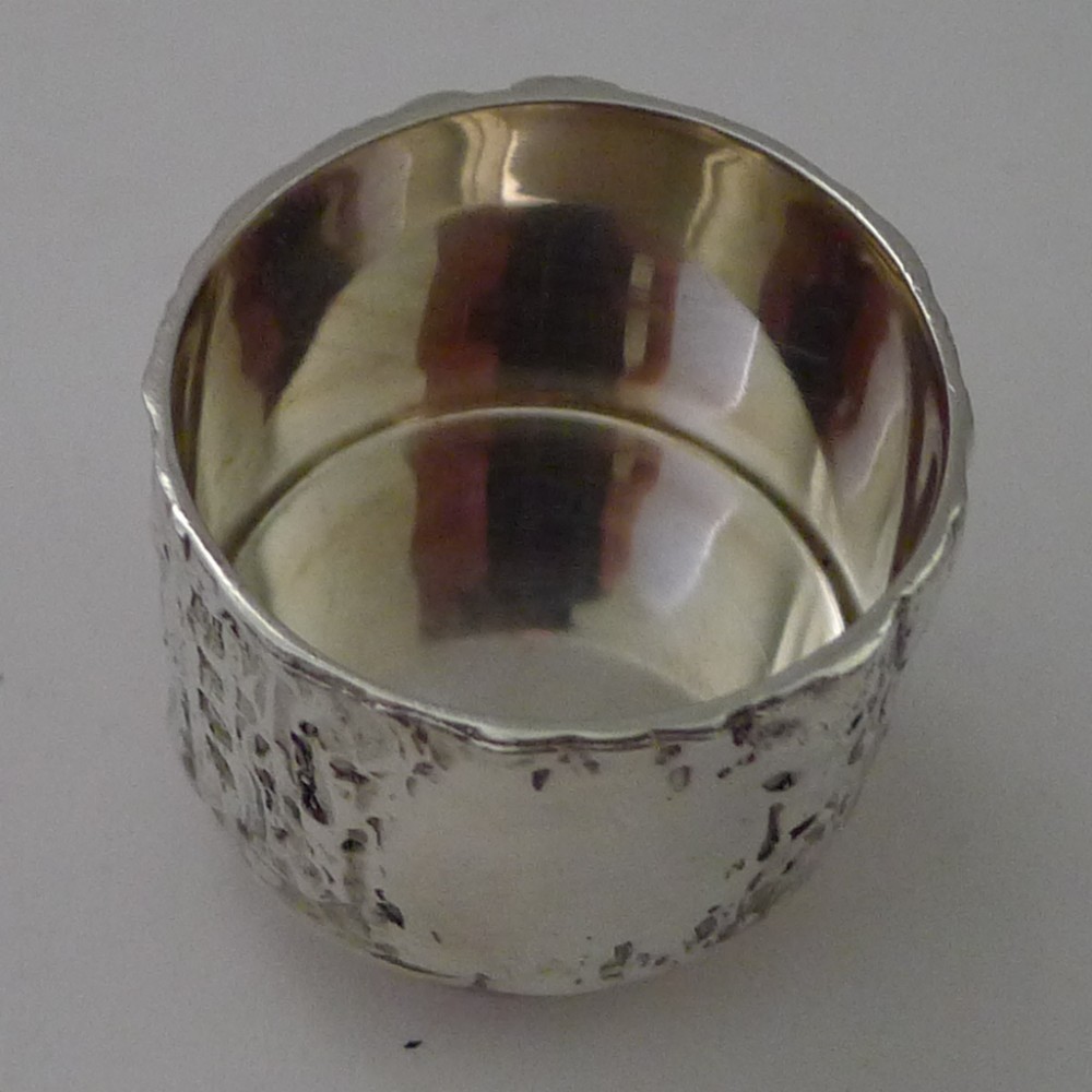 The set comprises an egg cup, a napkin ring and a spoon with gilded bowl. All pieces are a good heavy weight cast in a good gauge of solid silver with a combined weight of 129 Grams / 4.15 Troy Ounces.
