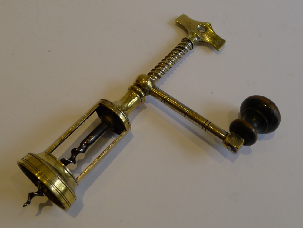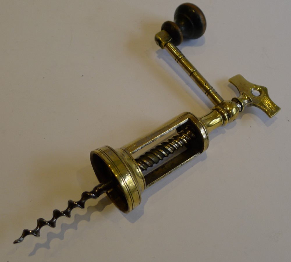 The terminal at the top is used to screw into the cork and the crank is wound around to remove the cork, quite ingenious for the Victorians.