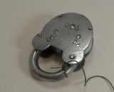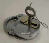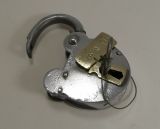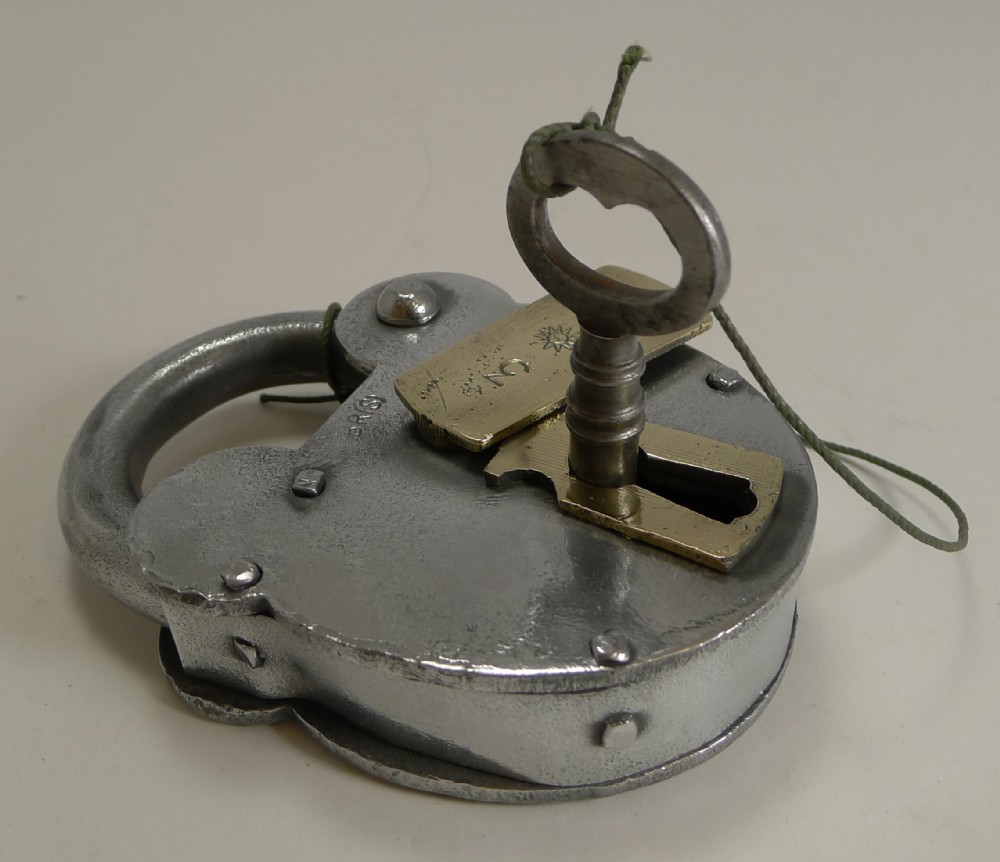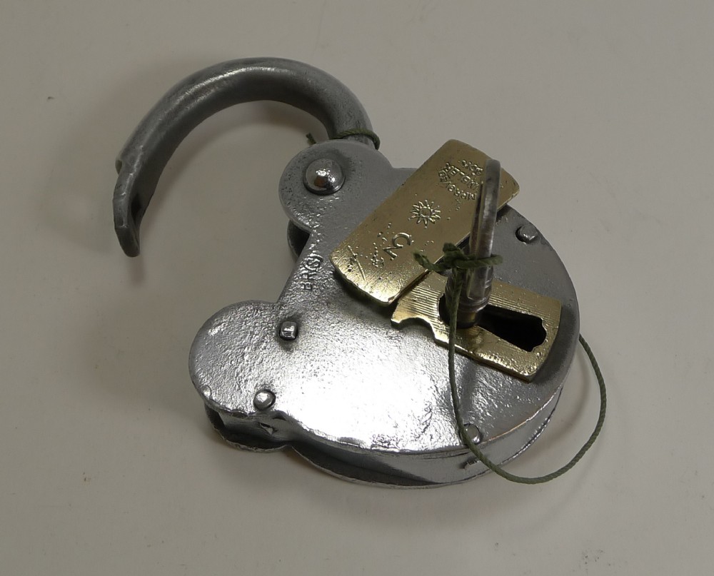 Large Antique English Polished Steel and Brass Padlock With Original Key c.1860