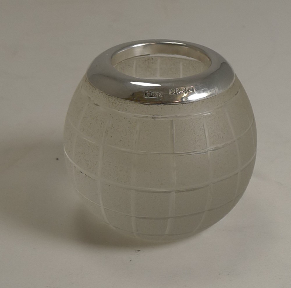A wonderful little glass table top match striker in the form of a golf ball, always highly sought-after. The top is made from sterling silver fully hallmarked for Birmingham 1902, early Edwardian in era. The makers mark is also present for Henry Williamson Ltd. Excellent condition measuring 2" x 2". Matches not included and cannot be shipped. Item ID: 40858 FREE Worldwide Registered Airmail Directly From London, England FREE Worldwide Shipping Directly From London, England Internal Ref: 40858