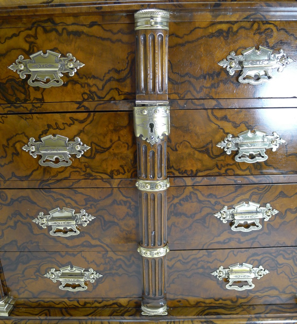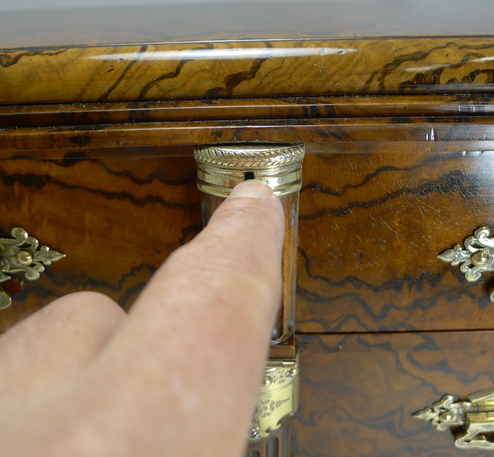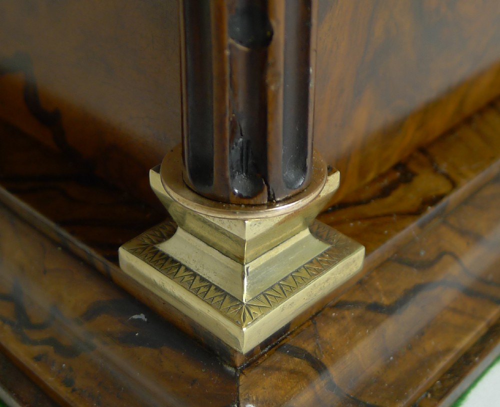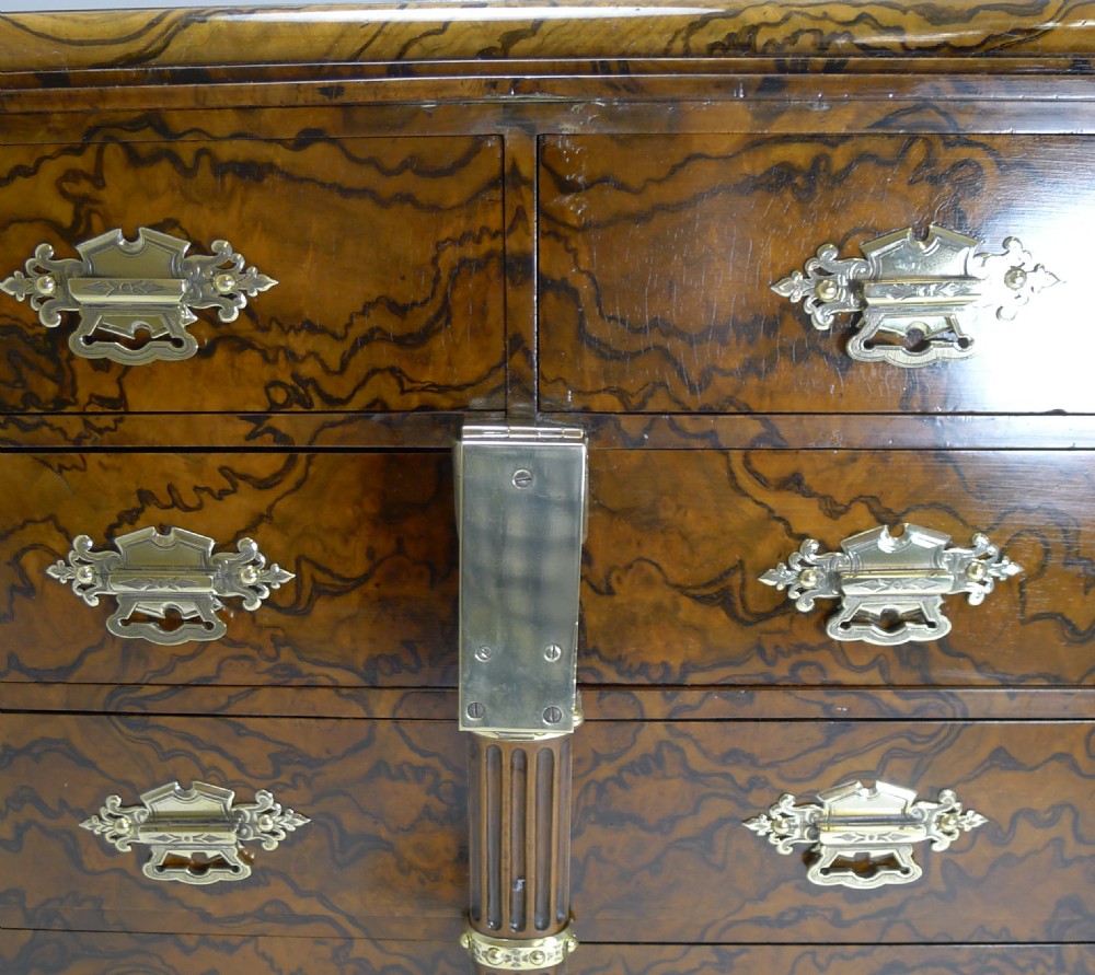 About as fine as they get, this large Burr Walnut cigar cabinet is a magnificent quality box beautifully made. Each corner has a carved column with a polished brass base and brass mounts around the columns, all beautifully hand engraved. All of the drawer pulls are again hand-engraved. This cabinet would have come from a very fine house, this type of box was used for entertaining, the top two drawers easily accessed by releasing the top (unlocked) shorter bar. These two drawers would have been placed on the table, you can see that they are finished in burr walnut on all sides, used to serve; the underside reveals Satinwood used to finish. The bottom (locked) drawers are accessed with the working key releasing the long bar which then allows the drawers to be accessed. Various cigars would be stored in these drawers and a variety placed in the top two drawers ready for table service by the Butler. The interior of the drawers is lined in Cedar wood which is what kept cigars fresh; this is not officially a Humidor as these are modern inventions to regulate the humidity within; it is the Cedar lining that did this job well over 100 years ago. Each of the drawers has an adjustable / removable divider to customise the interior's configuration. The drawers will accommodate a maximum cigar length of 6 1/4". Truly the finest in excellent condition, minor wear commensurate with age. Dating to the late Victorian period. The footprint measures 17 1/2" x 10 1/2" x 15" tall. Item ID: 41002 FREE Worldwide Registered Airmail Directly From London, England FREE Worldwide Shipping Directly From London, England Internal Ref: 41002