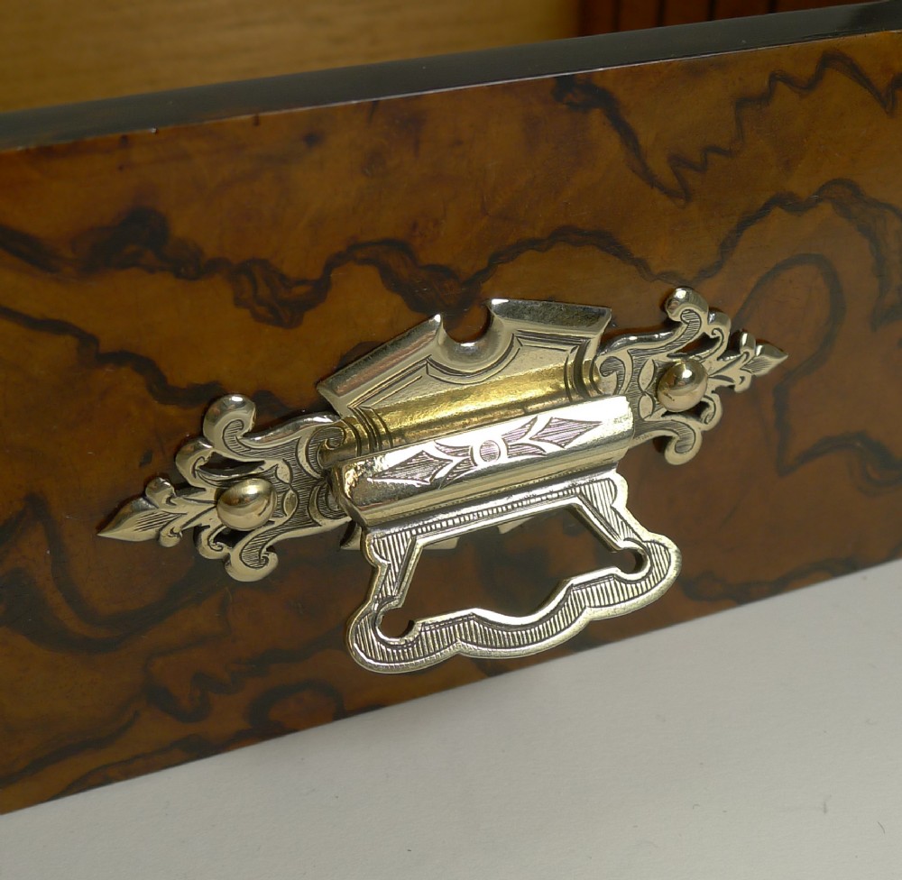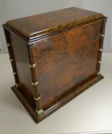 Antique, English Burr Walnut and Brass Cigar Cabinet / Humidor c.1880