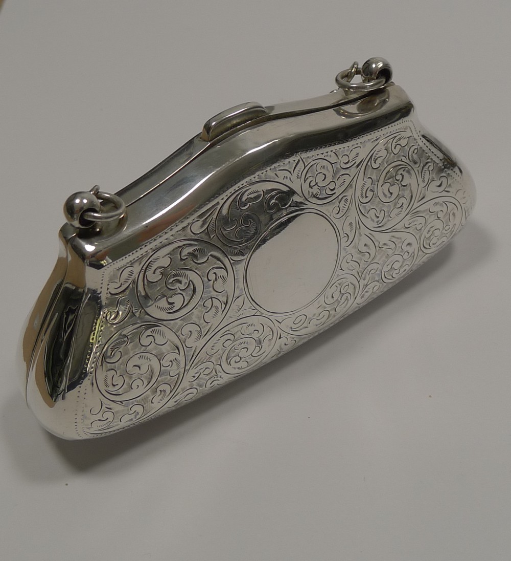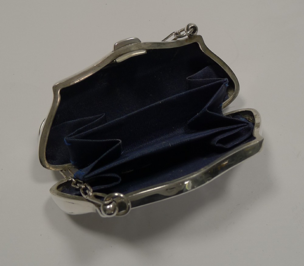 A wonderful and very elegant coin purse, made from English Sterling silver fully hallmarked for Birmingham 1913; the makers mark is also present for the silversmith, Joseph Cook & Son Ltd.
