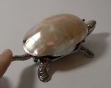 Rare Tortoise Mechanical Desk Bell With Mother of Pearl Shell