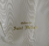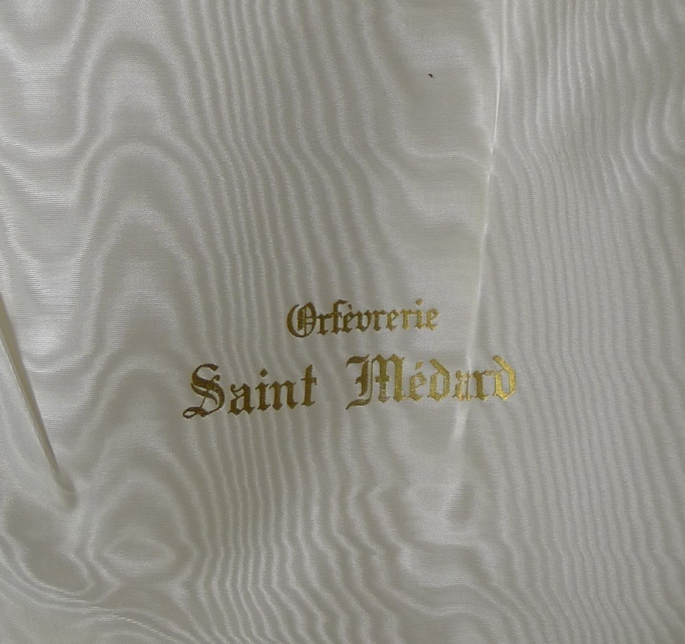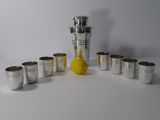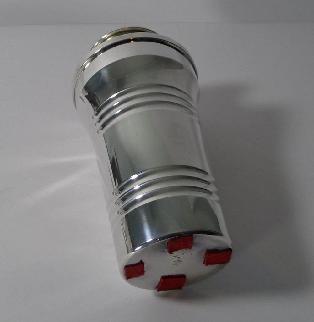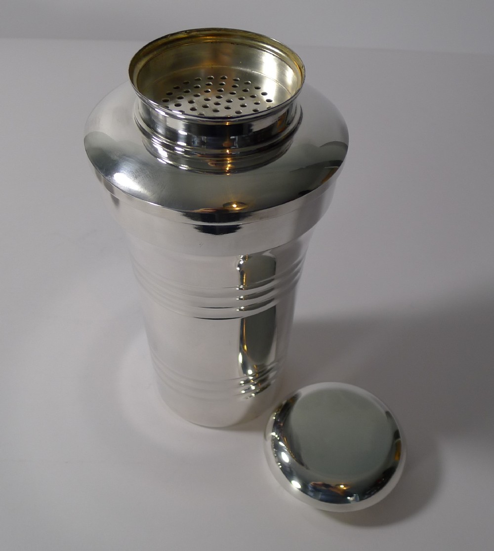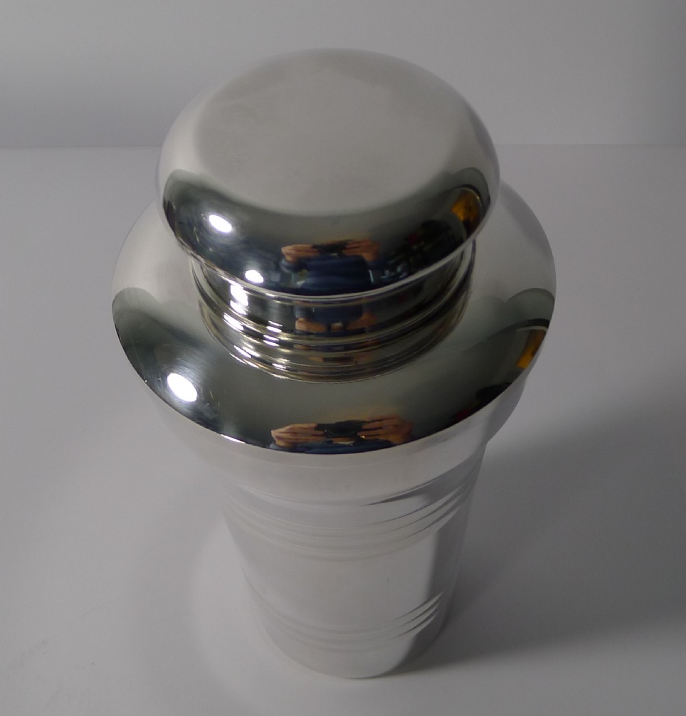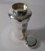 A magnificent and very stylish Art Deco cocktail set sitting in it's original presentation case. The set consists of a stunning cocktail shaker and eight small cups, all look to have rarely or never been used. They have clearly been on display as the previous owner have put some protective pads on the underside for display; I have left these intact. All pieces are marked by the well renowned French silversmith, St. Medard of Paris; the cream tafetta on the interior of the lid, printed in gold, "Orfevrerie Saint Medard". Dating to c.1940, the set remains in superb condition. The cocktail shaker has a maximum diameter measuring 4" and standing 8" tall; each cup has a rim diameter measuring 2" and standing 2 1/2" tall. The presentation box measures 13" x 14" x 4 3/4". Item: 42918 FREE Worldwide Registered Airmail Directly From the UK FREE Worldwide Shipping Directly From London, England Internal Ref: 42918
