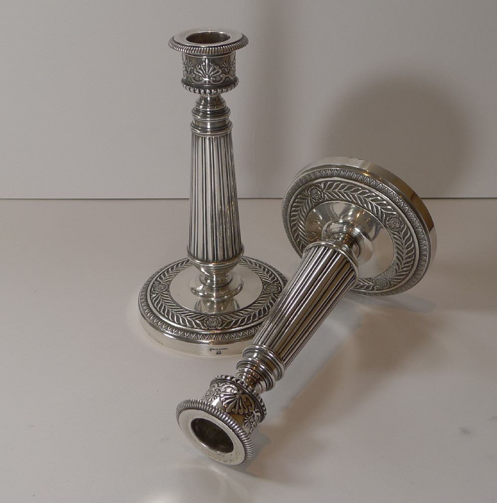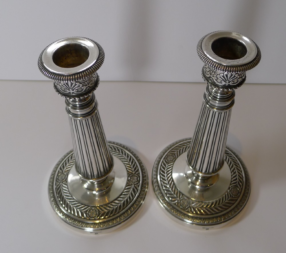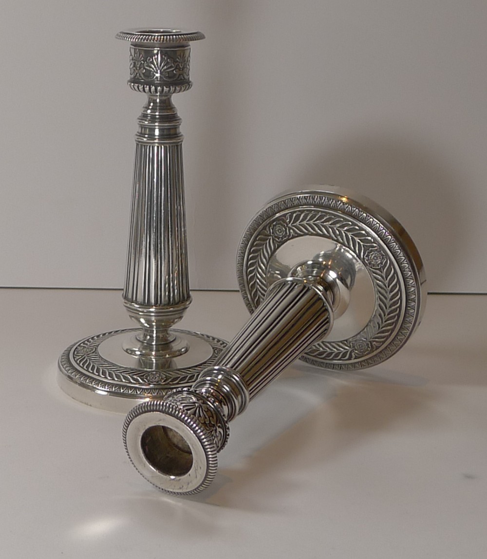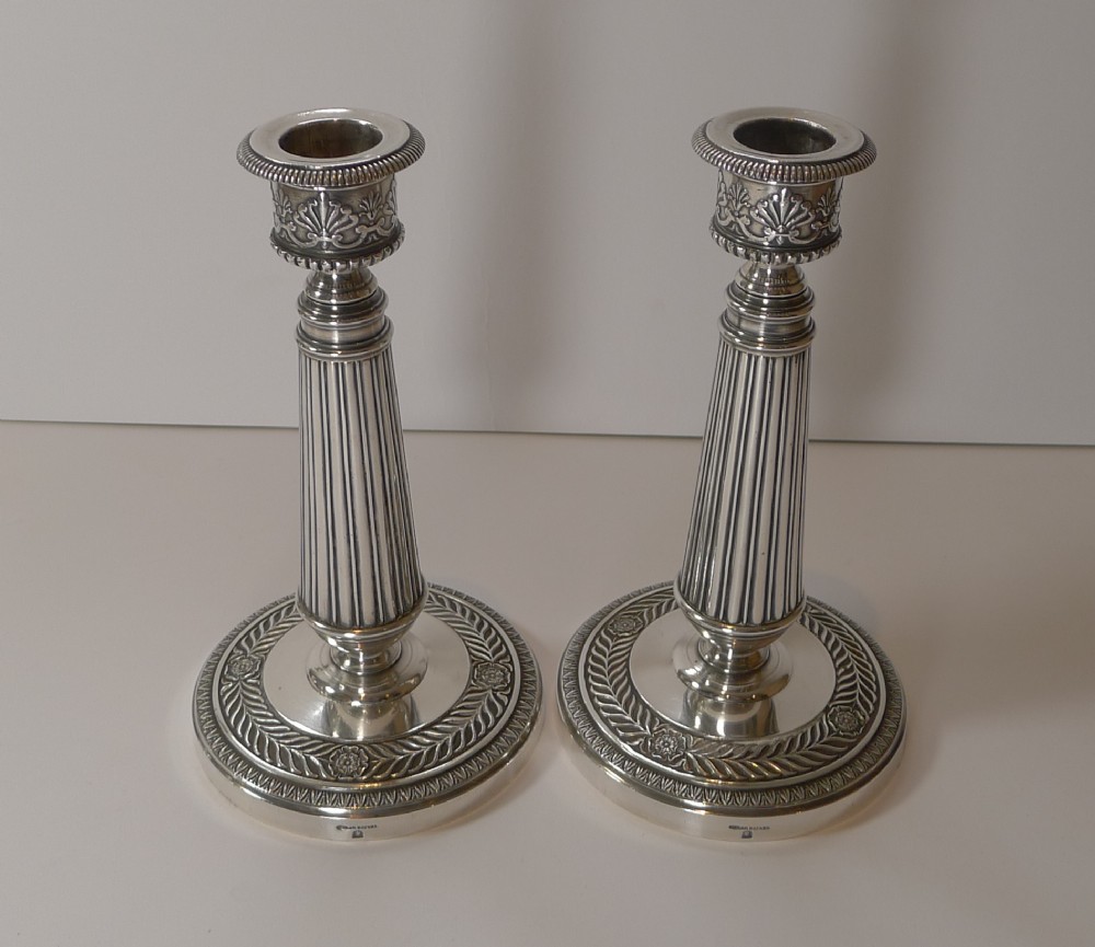 Top Quality Pair French Silver Plated Candlesticks by Cailar Bayard, Paris, c.1900