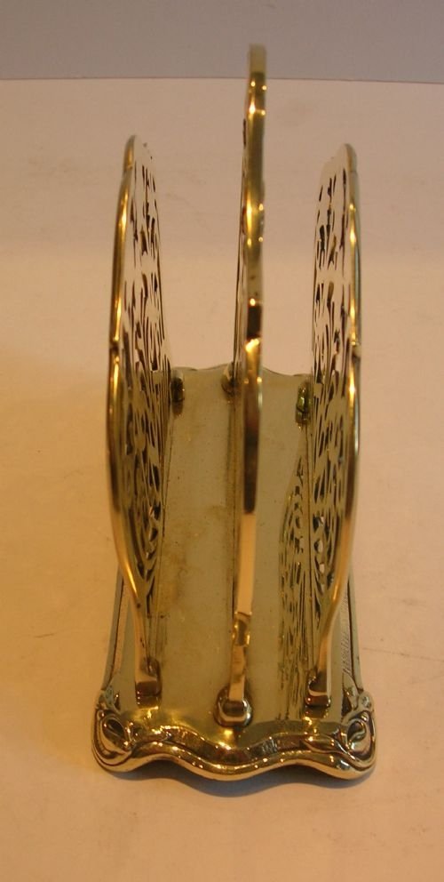 A stunning, unusual and highly decorative Art Nouveau letter rack made from solid brass and professionally re-polished to gleam.