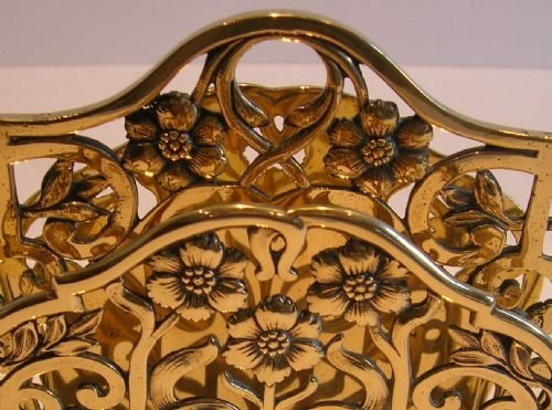 The front and back panels are pierced or reticulated and incorporate some stylized Sunflowers, very Art Nouveau and created around 1900.