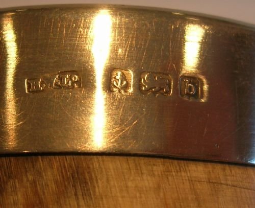 The silver rim is hallmarked for Birmingham 1901; together with the makers initials H.W. Ld for the silversmith Henry Williamson Ltd.