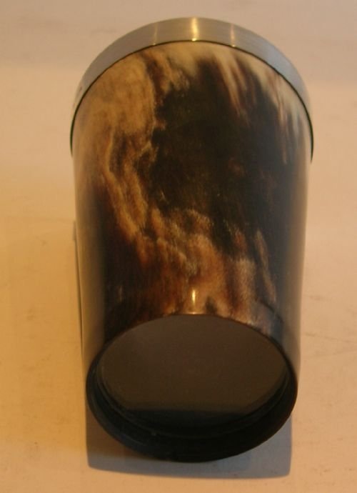 A really wonderful example of an antique English or Scottish horn cup or beaker made from an exquisite piece of horn, lovely colours and patterns. The base is made from glass.