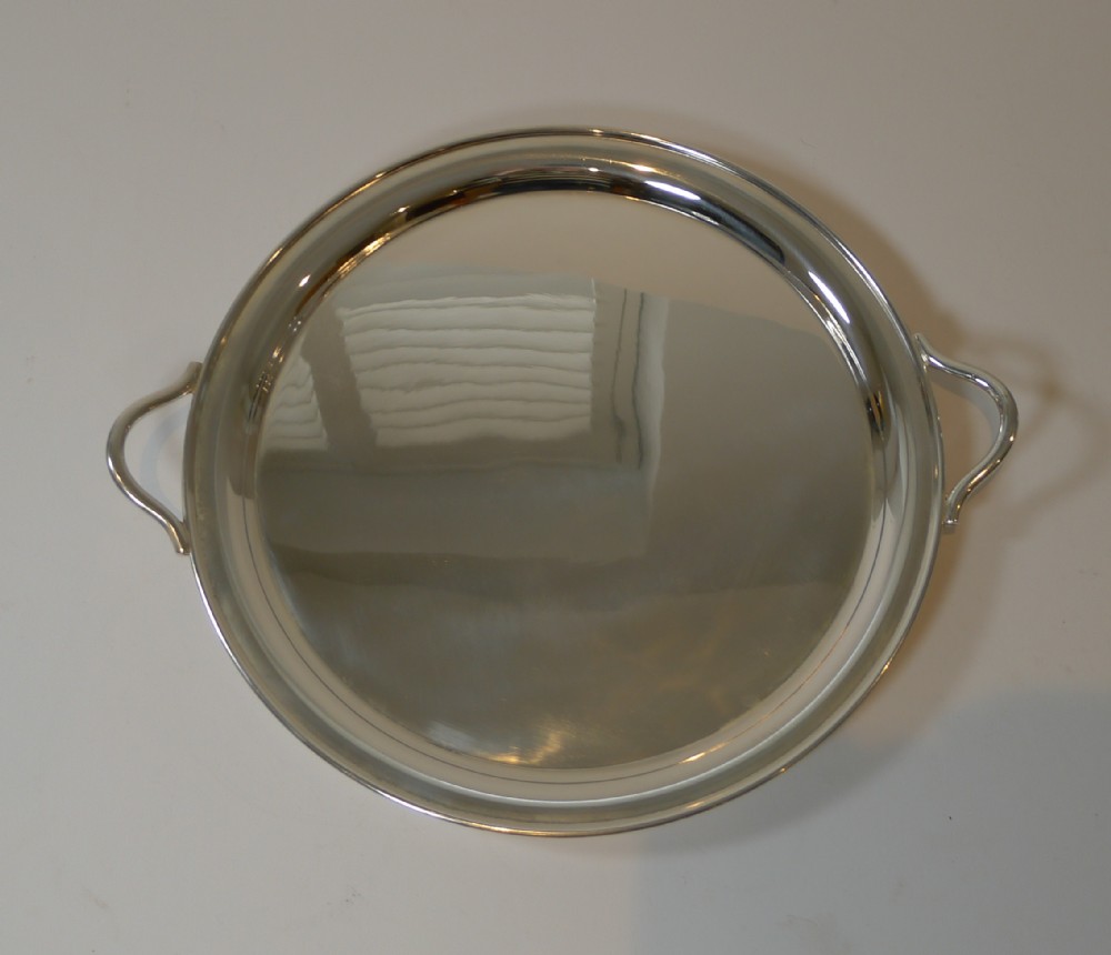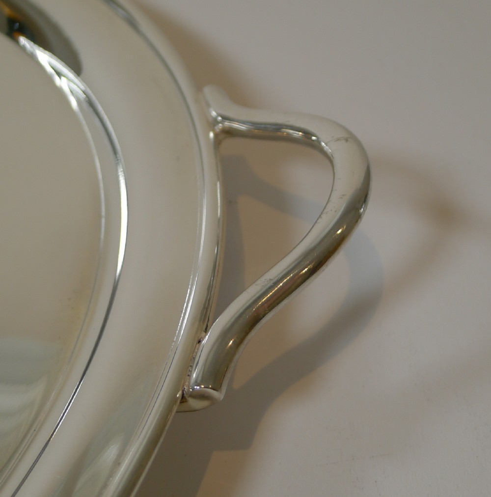 Of circular form with two handles. Just back from our silversmith's workshop where it has been professionally cleaned and polished, restoring it to it's former glory.