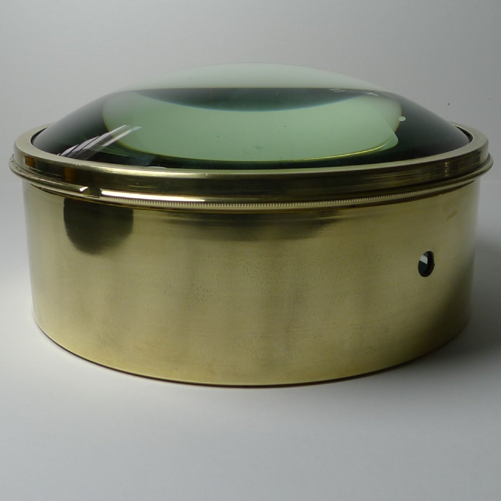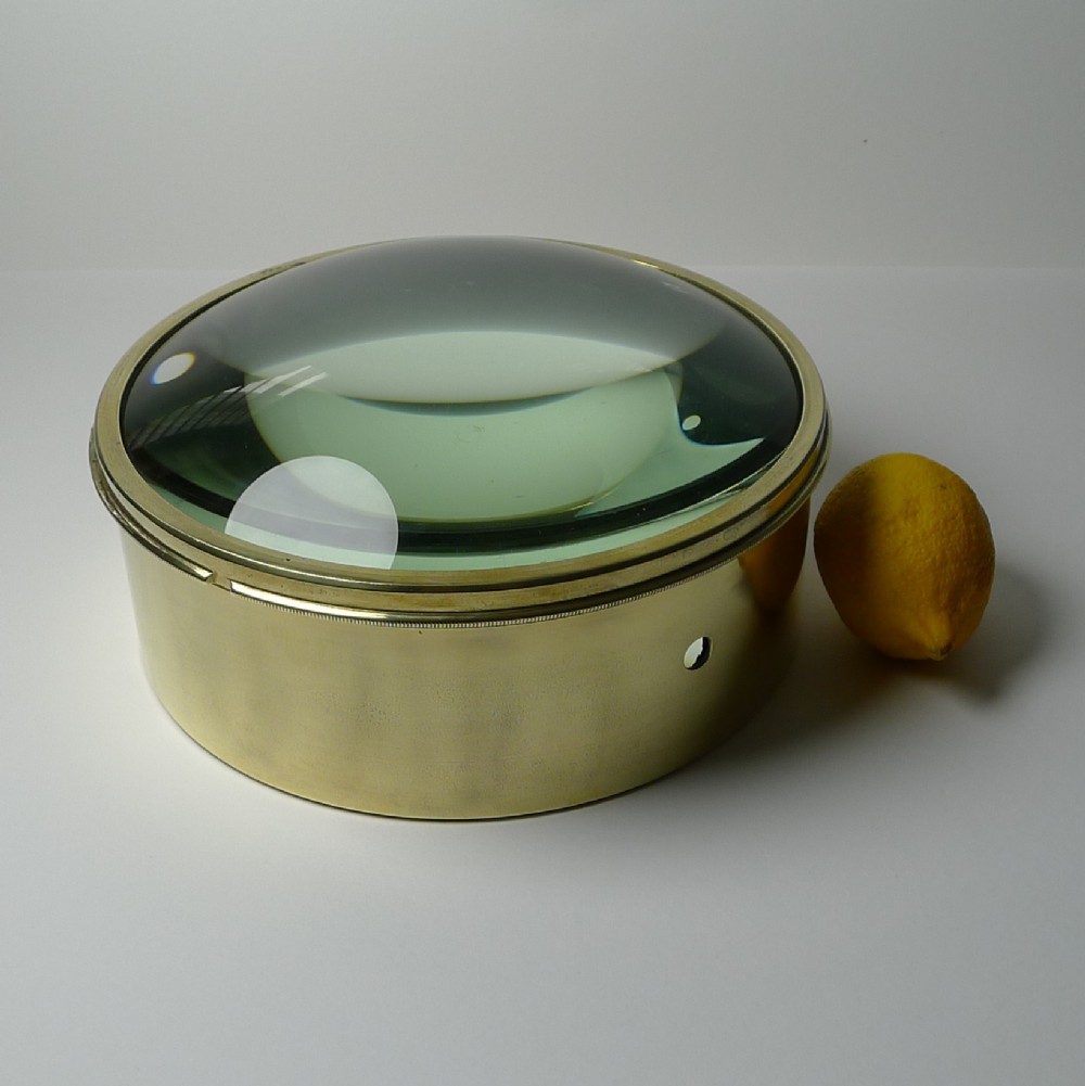 Wonderful condition (minor imperfection to the brass in one spot, purely from the casting process) with a good magnification and a hefty piece to keep those papers in place. 8 1/2" in diameter x 5" high.