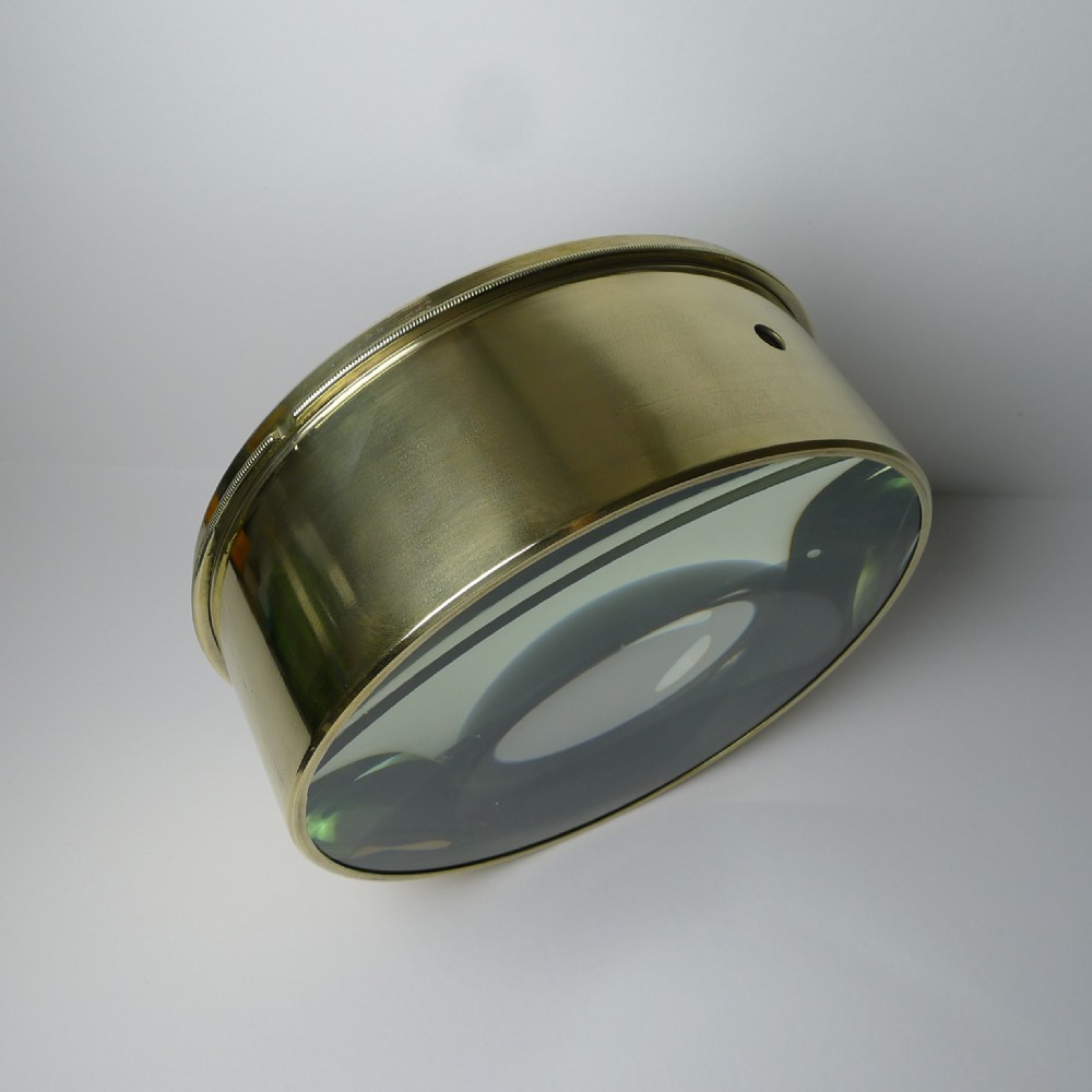 Always very popular and a very useful desk-top accessory, this one is one of the largest I have ever had, quite an imposing size; this size being the most sought-after and hardest to source. These large circular magnifiers actually are the condenser or magnifier from a Magic Lantern dating to around 1910 they are rescued, polished up and put back to use in the modern day.