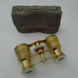 A Fine Pair Golden Guilloche Enamel and Mother of Pearl Opera Glasses c.1910